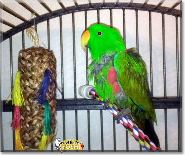 When I met Yoshi he was in an 18" X 18" (46 cm x 46 cm) cage (which is tiny for a bird his