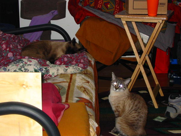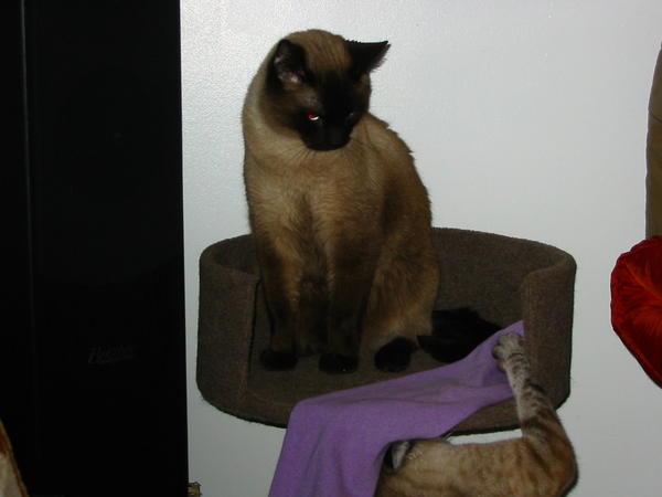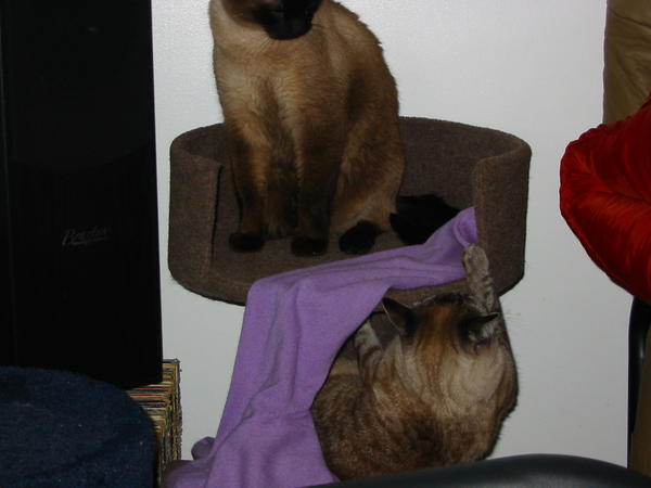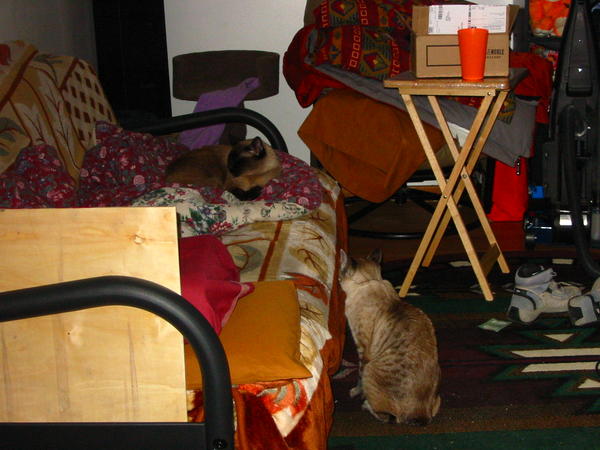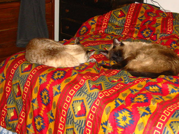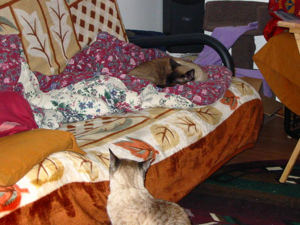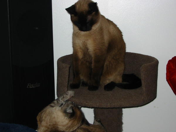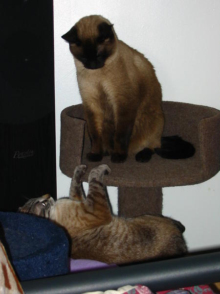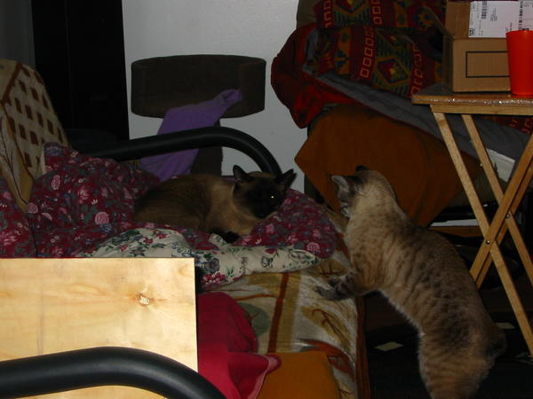 A little closer. She actually reached out and touched his ear with a paw just before I snapped the pic.