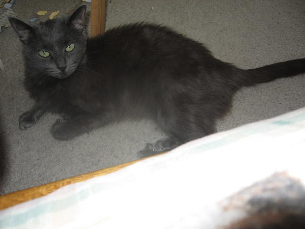 I was going through the mail, and she was supervising. Sorry for the bits of paper behind her head - all these years later and she still likes to shred paper :rolleyes:.
