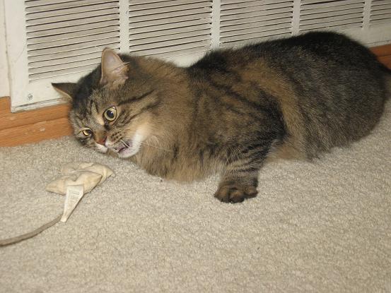 Here are some pictures of Princess and Duchess playing with their catnip bag:
