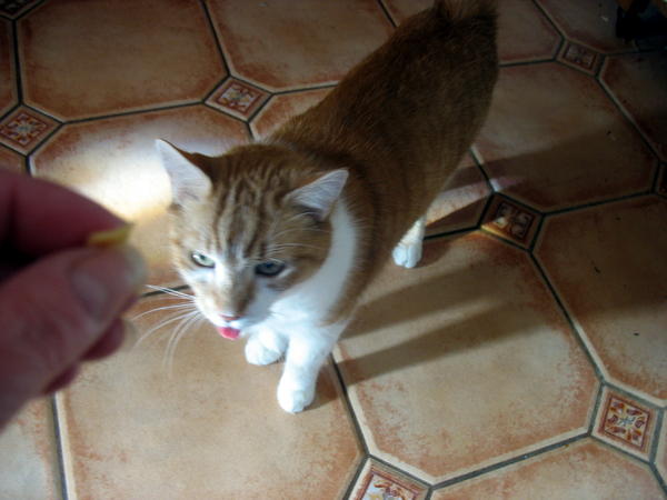 Sometimes when I am in the kitchen cooking Buddy will come out and meow at me. I usually open the fridge and get out sliced cheese or ham for him, whatever is in the drawer. Do you think he is spoiled?