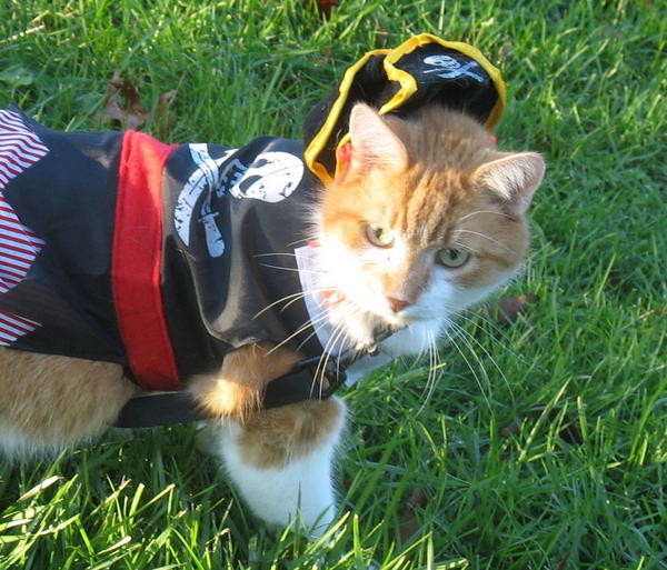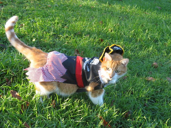 Buddy wasn't too thrilled about wearing a Halloween costume but when I asked him if he wanted to "go outside" he was willing to do anything. :D