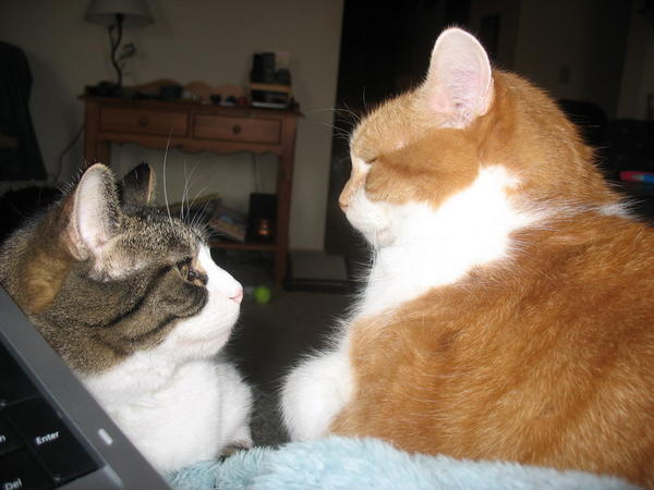 These two despise each other. Buddy can barely walk past Mama without her giving him a swat. They both like to sit with me on my recliner at night, especially now that it is chilly.