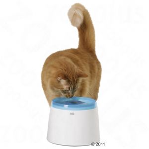 Calvin is now obsessed with running water. He will stand ankle deep in the bathroom sink filled with water to drink "running" water. I'm at work all day and can't be running the faucet for him. He used a Petmate fountain years ago but the pump died and I never replaced it. I think I need to get him a fountain for use all day. Any input?