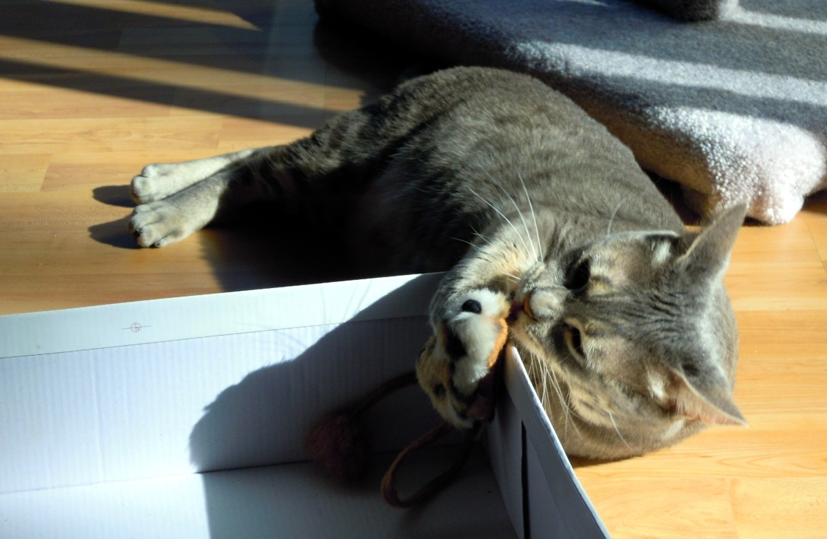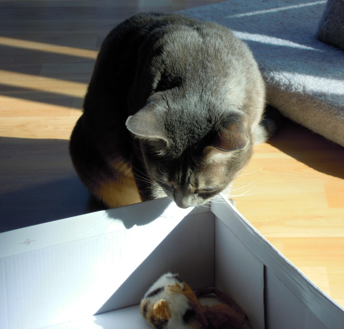 Hi Evie, isn't the mousie game one of the best? Especially when there is a box involved;)