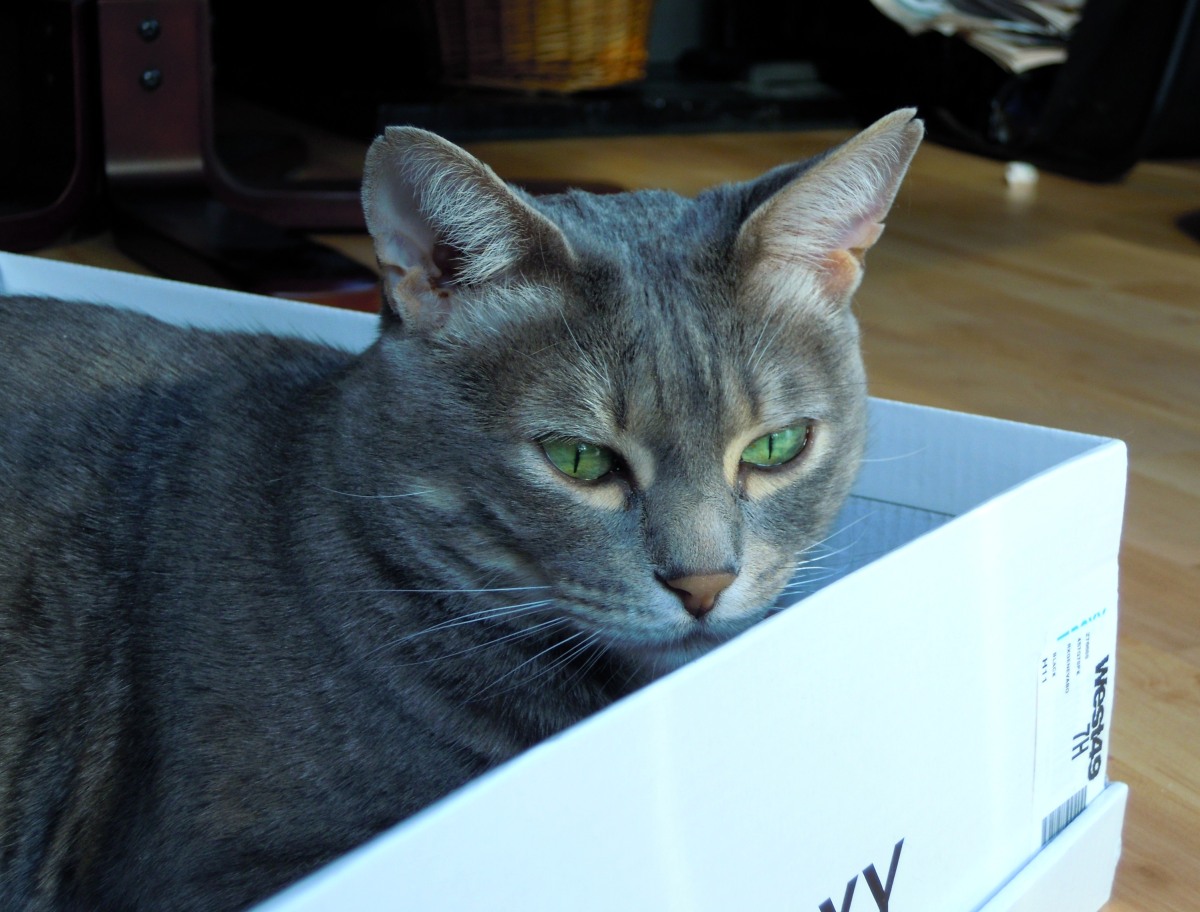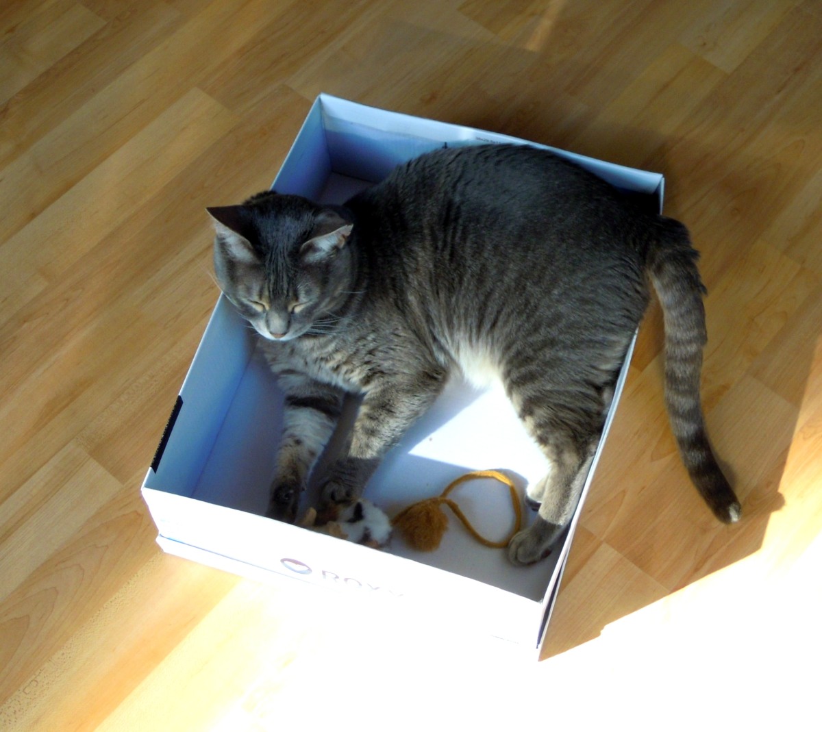 Have you noticed that there isn't a box a kitty can't manage to fit into? And sweet Eve even managed to keep enough room in there for her favorite mousie. She's beautiful and has every reason to be proud of herself. Please give her some lovies from me? :love:
