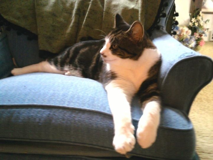 Dennis is a scared kitty who has lost his mom. His owner passed away 20 days ago and Dennis is beside himself. He has been spoiled, he's king of his large home and has always been well cared for by his owner. Dennis is a large boy, very handsome and striking looking.
