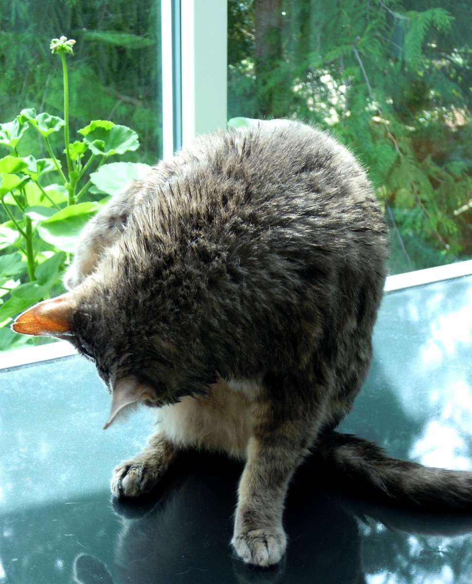 My three groom themselves very well! I do not think either they, or my blood supply, would like it very much if I bathed them. Ming is my only cat on meds and if I wrap the pill in Pill Pockets I can get it down his throat. He won't eat it on his own, amitriptyline is very bitter so even Pill Pockets won't disguise the taste. He is fairly easy to pill, though. He's been on meds over three years now and after the first few months he got very easy to pill.