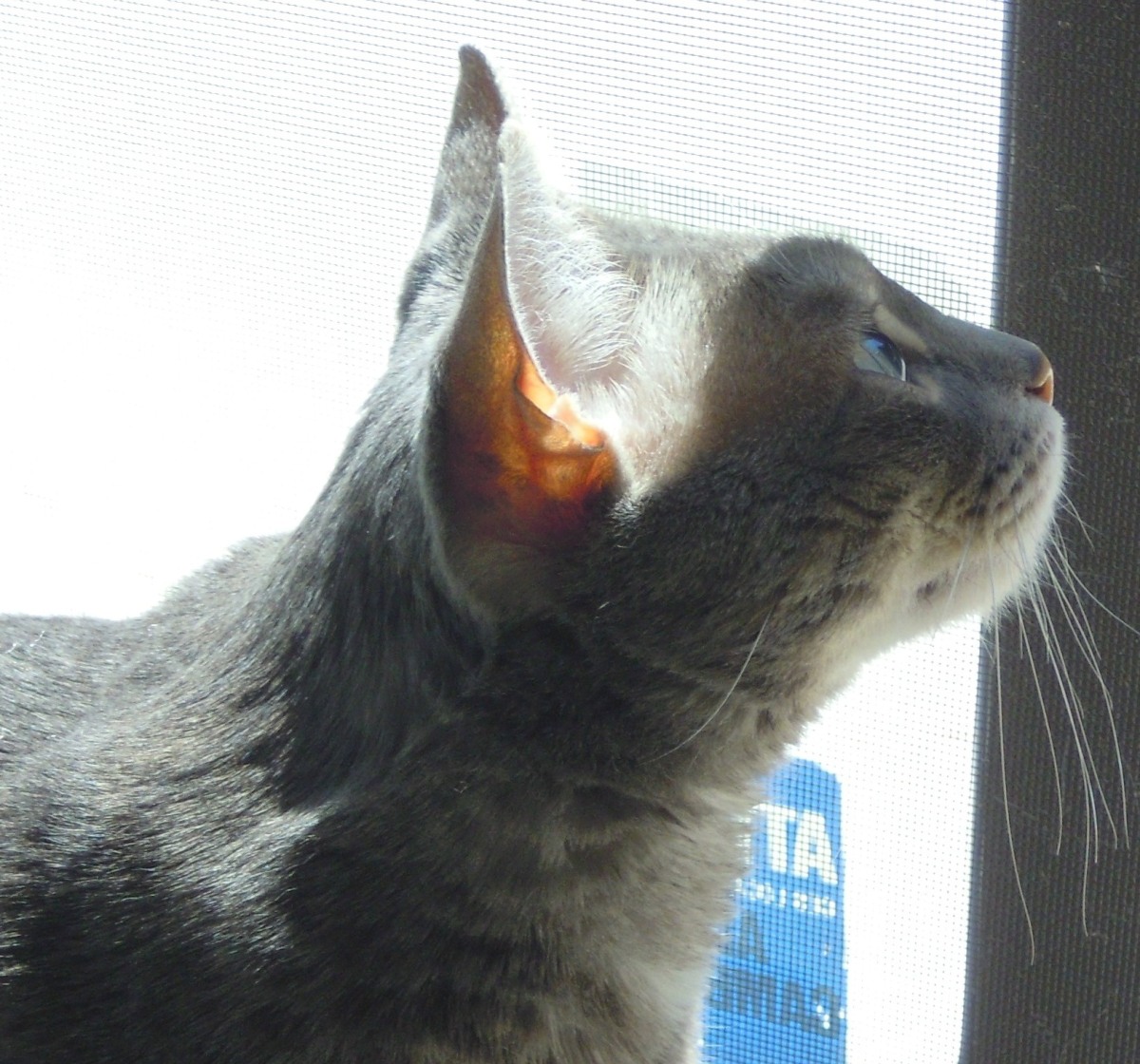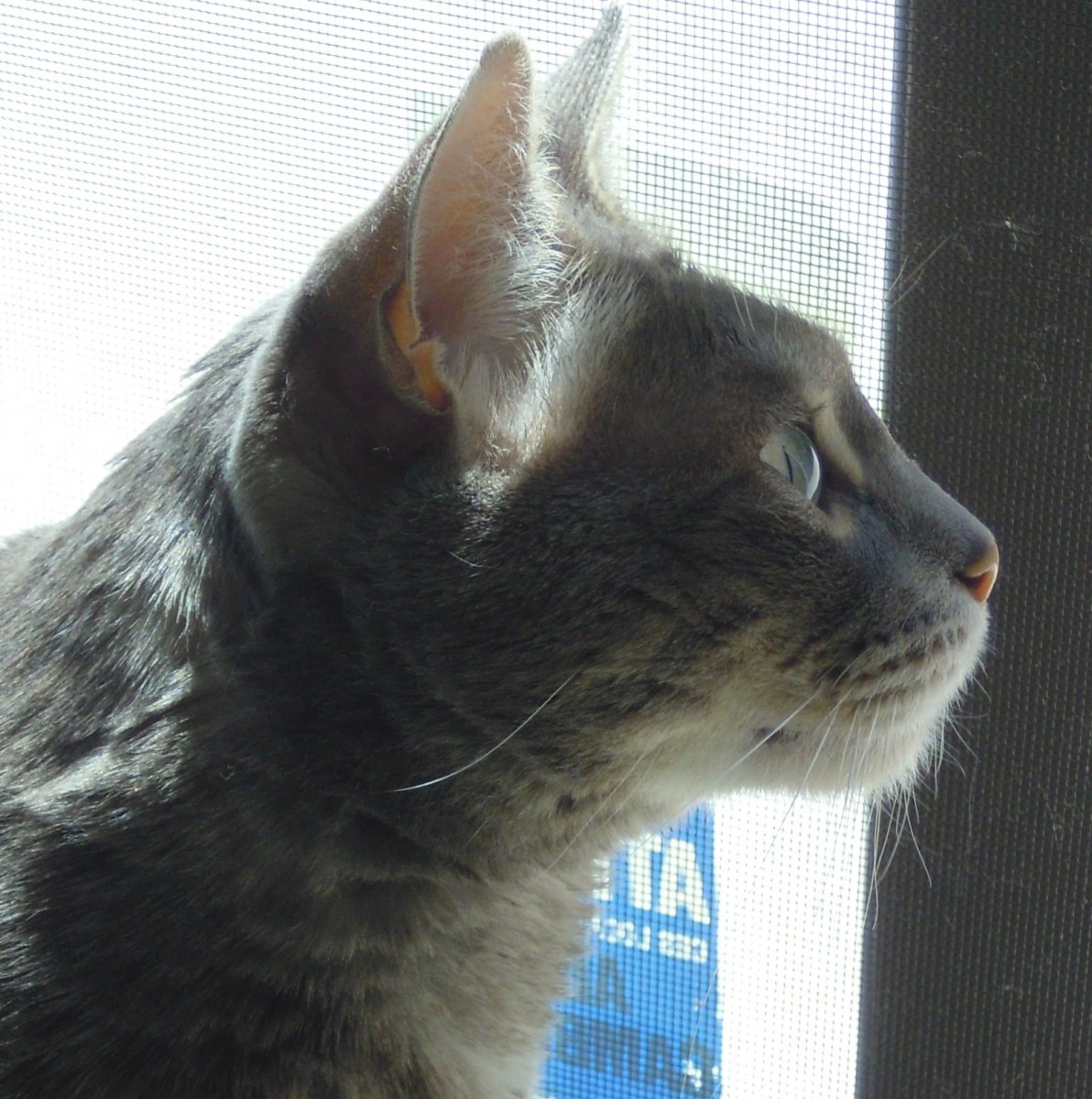 Cats are so naturally beautiful; I love watching Eve intent on something she is watching or listening to. Today I took some profile pics of her face. Notice the different position of her ears - she was listening to the birds outside.