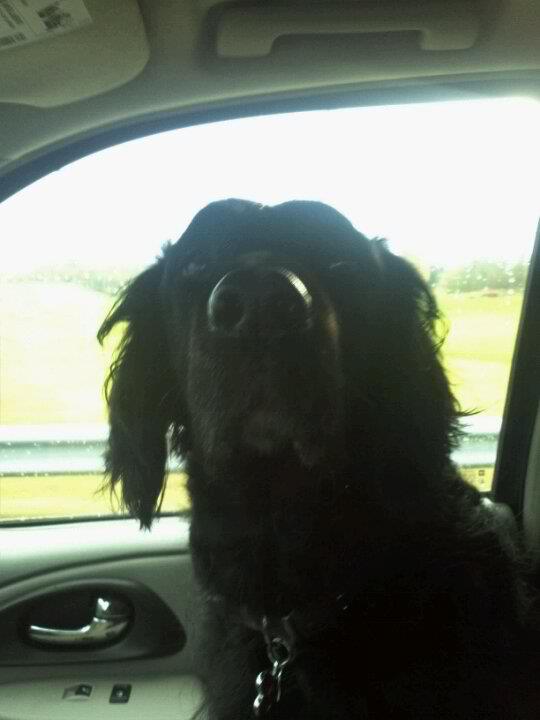 Zoey- my old girl it still up and kicking. Her back has been getting worse and worse everyday, don't know how much longer she will be with me. :( (she has spondylosis, hip dysplcia, and was newly digsnoised with heart murmer) But she is happy as she can be. She just had her 9th birthday which is past the life expectations of a flat-coat!