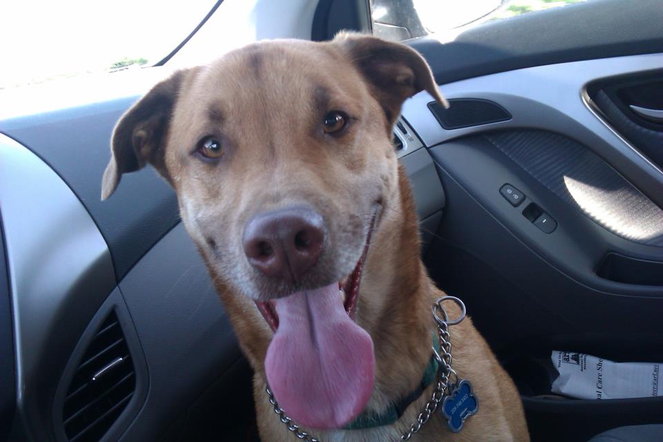 He freaked out a little on the way home, but eventually settled down in the back seat with Taggart.
