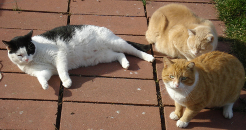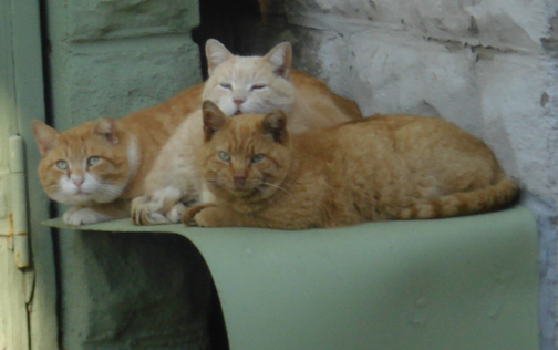 9- LAST ORANGE ONE IS VERY OLD I NAMED HIM SIBONEY CANNOT GO NEAR HIM. I THINK HE HAS A HOME. HE IS GONE IF ITS COLD AND COME TO HANG OUT WITH THE OTHER ORANGE ONES. HE HAD AN URI AND WAS THIN TO DIE AND I NURSED HIM BACK TO HEALTH WITH CO Q10 AND AMOXI AND VITAMIN E.