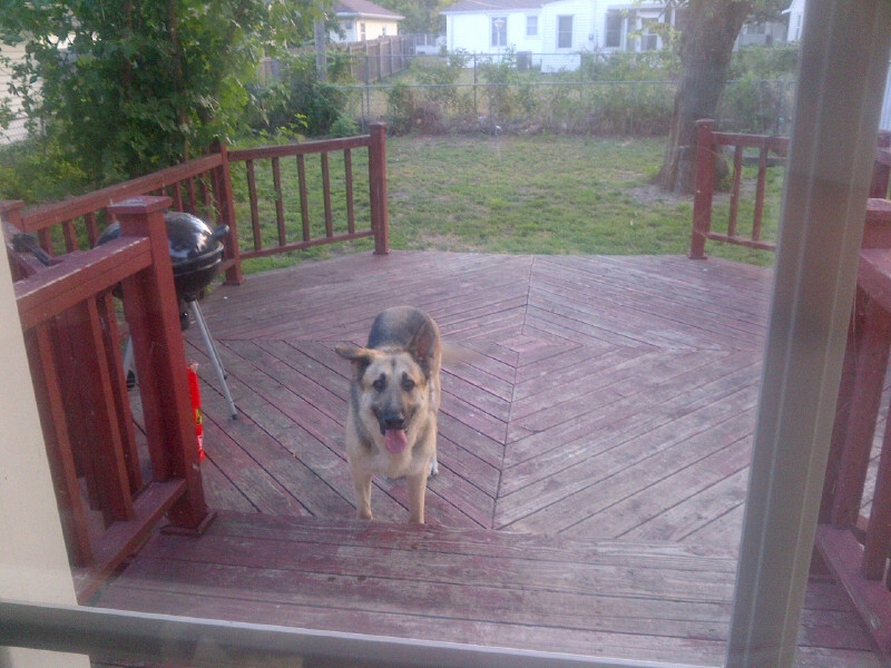 I have recently taken in an abandoned German Shepherd, he has a terrible fear of thunderstorms. I was unaware until my door bell rang one morning at 6 AM. It was my neighbor with poor baby Doc in tow. He had jumped the fence!