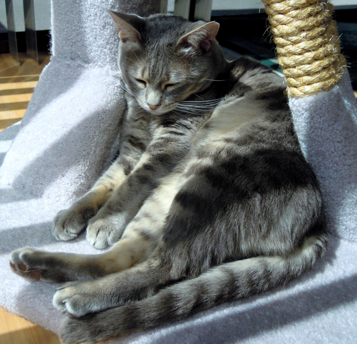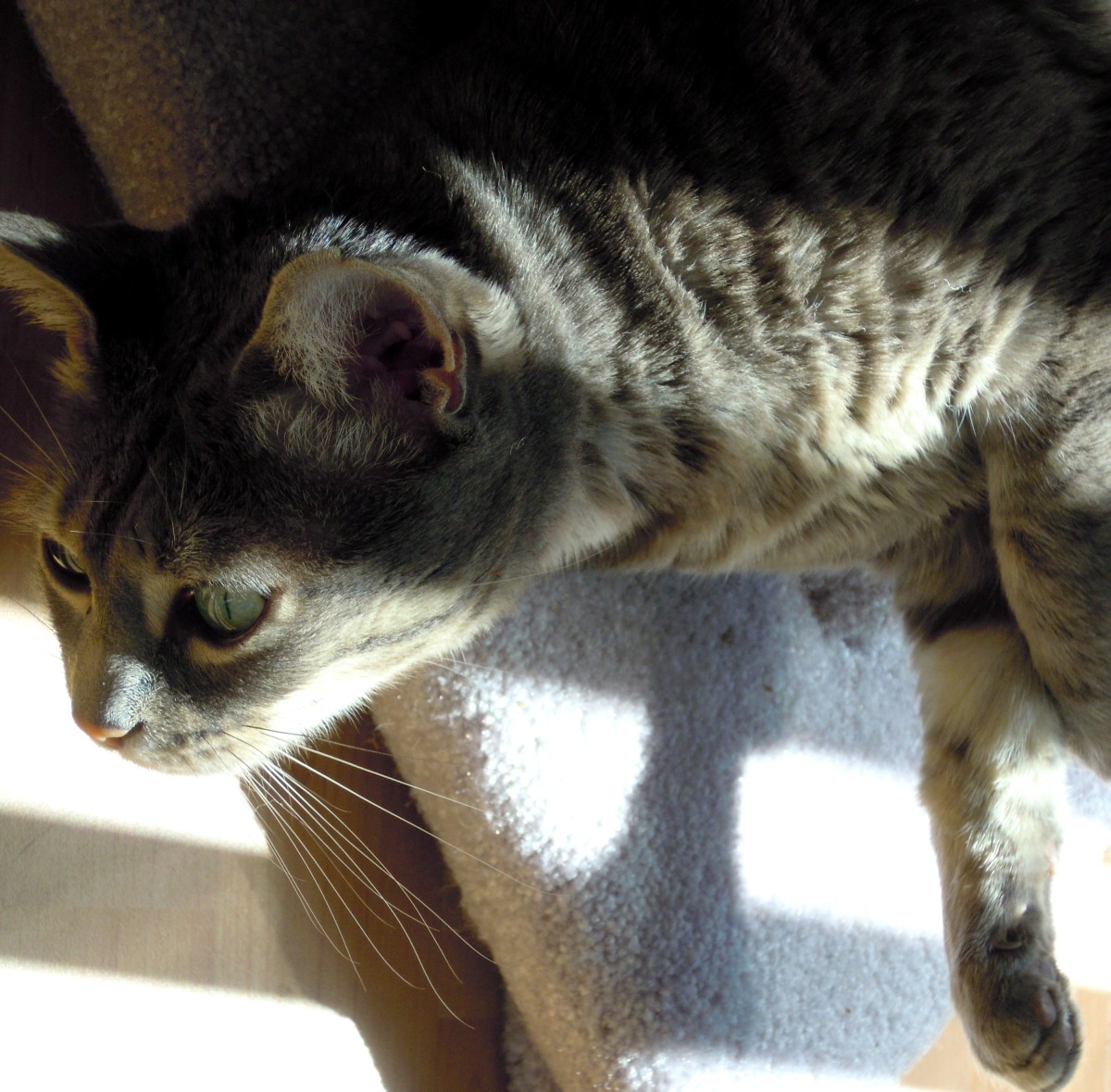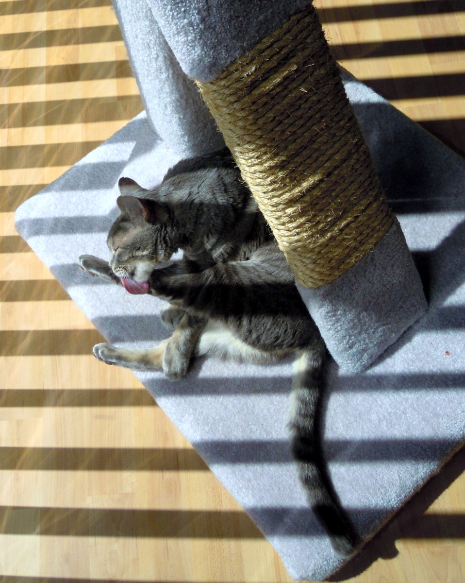 Find a perfect sun puddle (preferably one with a rythmic design pattern) and begin to assess the self