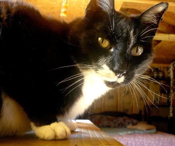 Boots has always been impossible when it comes to cameras. This time I placed the camera on the bench in front of me, pointed in Boots' direction. What he is doing here is keeping a watchful eye in my direction to assure himself that I am not trying to take a picture! I tried nonchalantly to rest my hand in front of me, trusted that I had Boots in the frame, and pushed the button.