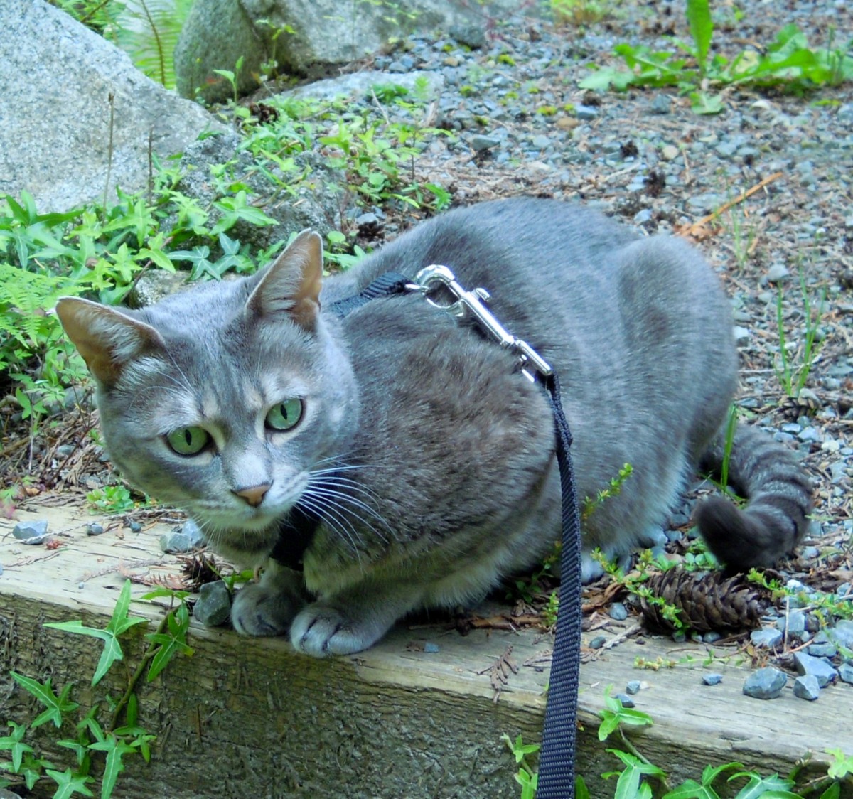 Eve is so beautiful, I love her coat and her green eyes! You can tell how she enjoys the nature and how alert she is. She will soon want to go out all the time. :)