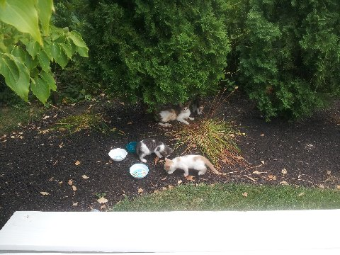 Hi. I have found a mom and four kittens living outside of a home that my husband is working at. Someone is feeding them when they think about it. They are very skinny and are not wild as they will let you pet and pick them up. They are out in the heat and weather. Is there anything that you can do or suggest as I really feel for these kitties. I already have 2 and at my limit. Thank you. Joyce Quering [email protected]