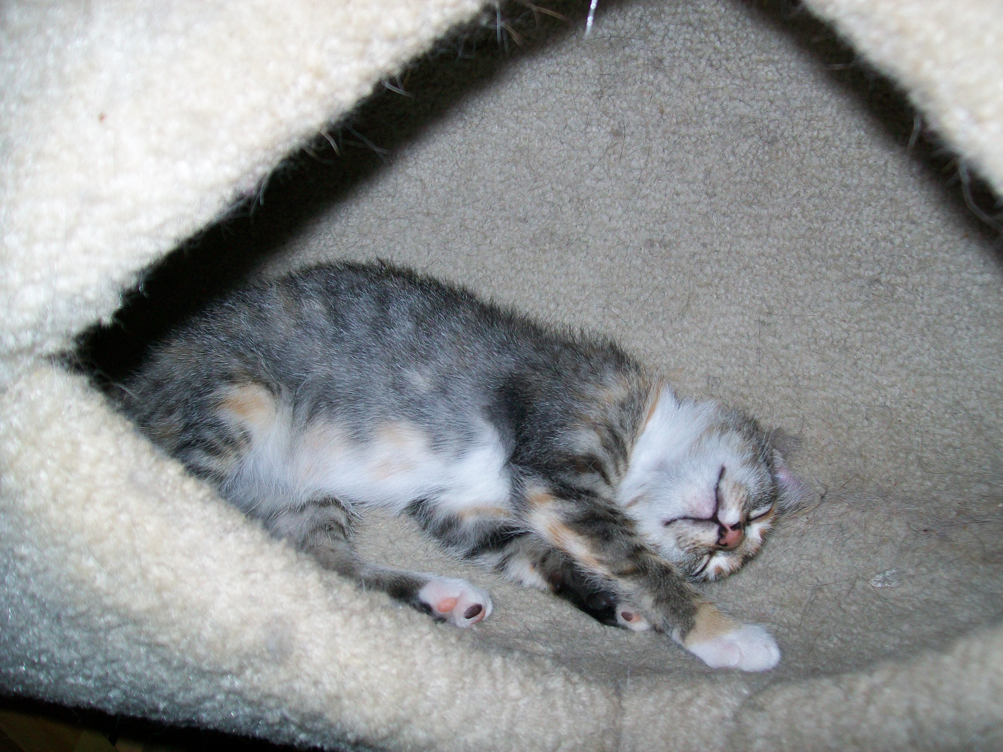 On July 17 I took the vets a fecal sample from Baby Cakes and they said she had coccidia. They treated her with Ponazuril and we gave her the first dose on July 17 and her second dose. At that point we did have her separated from the rest of our crew too because we didn't want them to get coccidia. Once she was feeling better she was able to come out and play and she was just so happy to play with Loki. We ended up putting her in our bathroom for a couple days about a week or so ago because she had a piece of litter stuck to her butt and once we got it off her butt, her butt seemed irritated. Once she seemed to heal up we let her go back out with our young crew. We kept a close eye on her butt to make sure she wasn't getting anymore cat litter stuck to her anus. When we put her back in the bathroom we used yesterday's newspaper so that way nothing would stick to her bum.