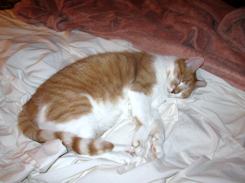 Oh yes, you can scratch making the bed off of your morning to do list. I'd be concerned if you woke that sweetie up, it could mean a call to Groucho the Lawyer. Wishing you nice kitty dreams, sweetie :love:
