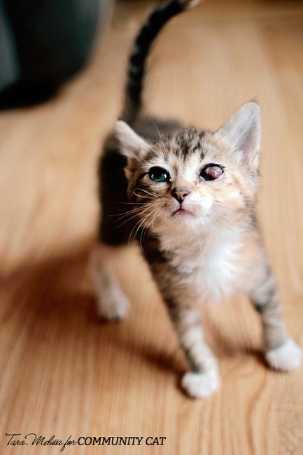 Available for adoption, Whitewater, WI through Community Cat Inc. Application can be found at www.commcat.org. This is Nicki Minaj, the one-eyed wobbler! She still had her bad eye in this picture but has since had her enucleation and is ready for her new home. She has fairly mild CH and gets around well. She has not yet figured out stairs or getting on the furniture but she is sure thinking about it! She loves other cats and would need to have other cats in the home. She is also great with children. She has not yet met a dog. She is so full of life and enjoys every second of it. We call her our 'little purr monster'. You just look at her and she starts purring. Pick her up and she's in heaven! Little Nicki is ready and waiting for you to spoil her!