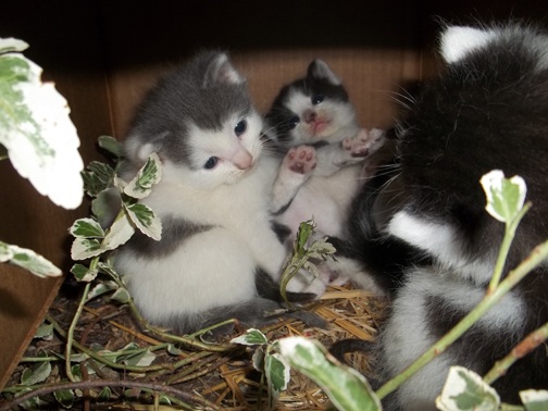 The Mommy Cat made her way to this woman's house, as she feeds the local strays. Starving & malnourished BUT VERY PREGNANT! & with nowhere to turn, she had her babies on a pile of leaves in her yard!