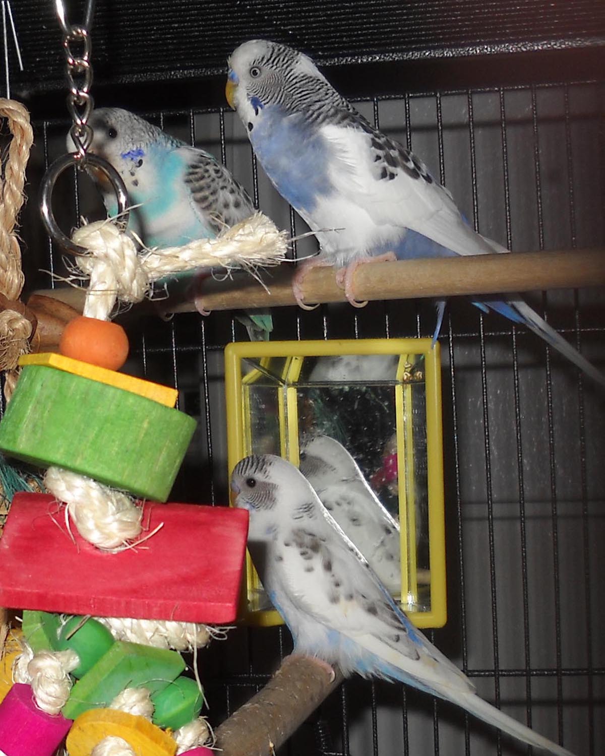 Oh my gosh, Donna!!! I can't believe how fast they've grown!:eek: They're so beautiful! I want a Budgie SO bad!:D Give them some gentle strokes and air kisses for me! (Do they have names yet?)