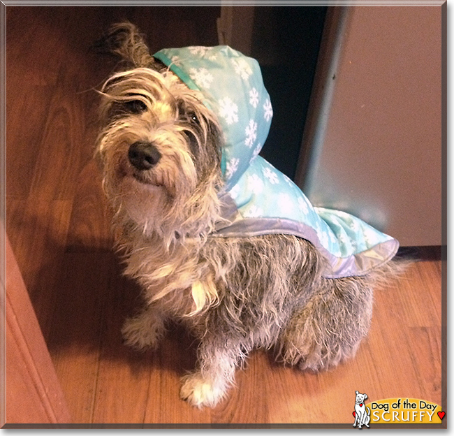 Oh! How I adore "scruffy pups," especially ones named Scruffy!:D You're just too precious for words, Scruffy Doofum! That shot of you in your stylin' rain gear, that million mega-watt smile of yours, is just what the doctor ordered on this cold and rainy day; warmed me to the core! No wonder your family loves you so very much...your beautiful, inside and out! How lucky your people are, having a joyful, fun loving, energetic furkid in you, sweetheart! You're a treasure!
