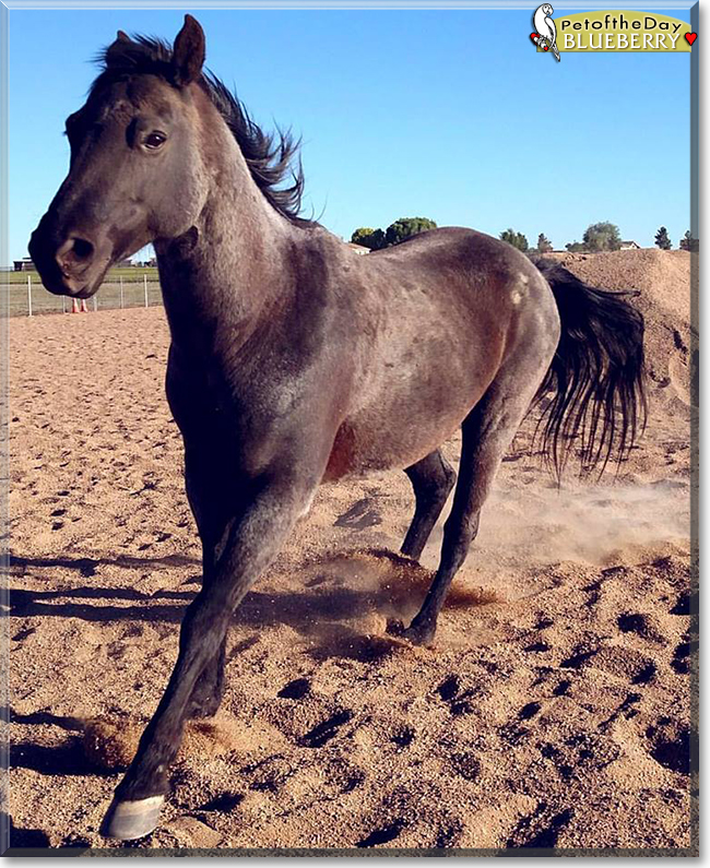 Dearest Blueberry, what a gorgeous Quarter Horse you are! You are positively stunning in all those photos. And what a nice story you have to tell! You and your dear person came together at a time in which it turned out you both needed each other. You have done wonders together, and now you have the most delightful personality. You make everyone smile with all your energy and antics. You and he/she love each other dearly, don't you. What a wonderful love-filled home you share!