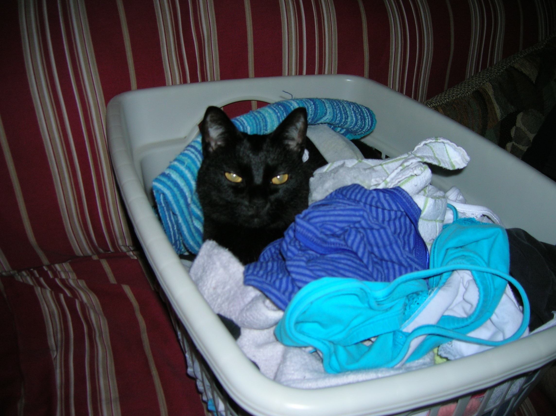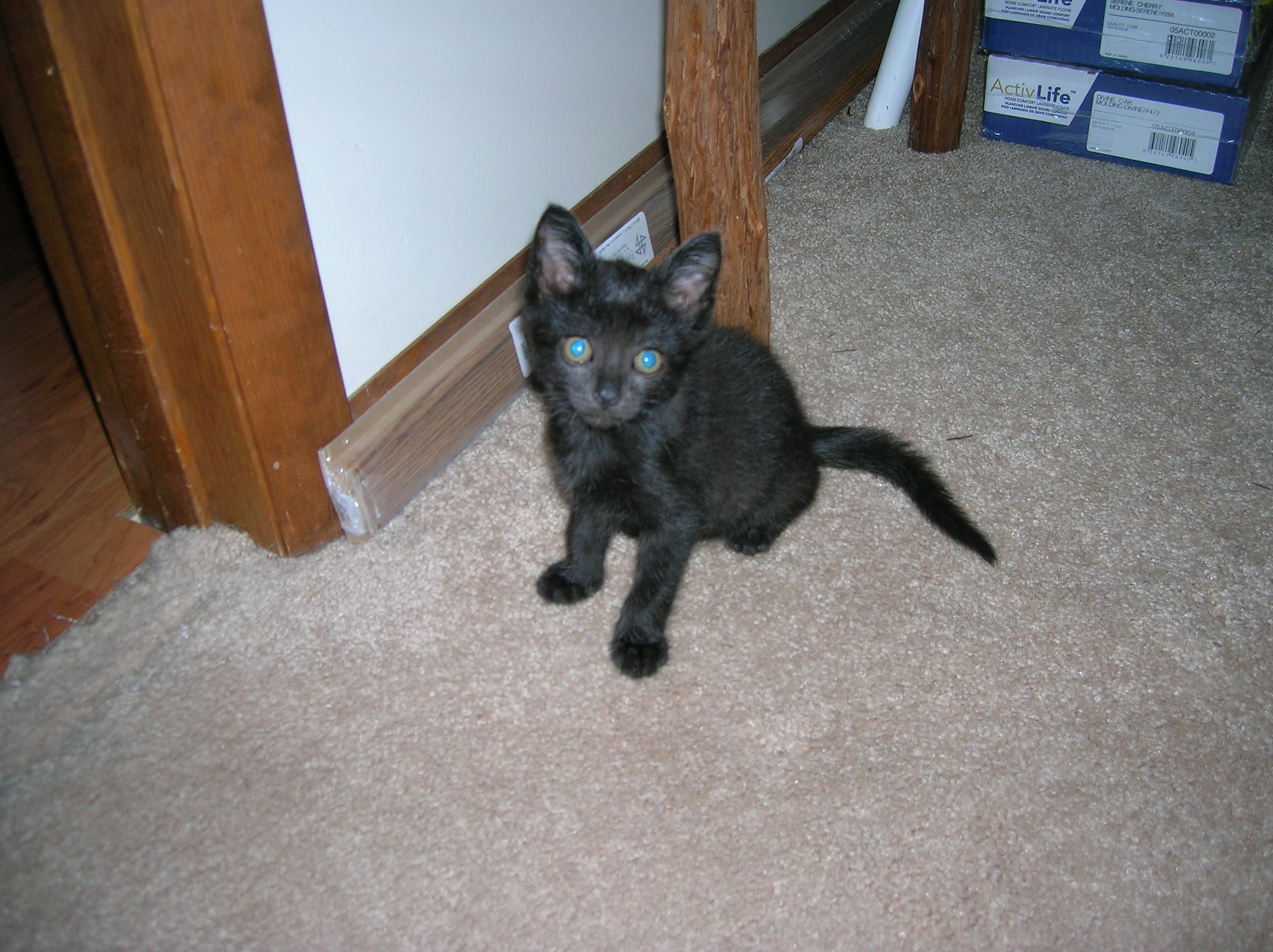 He frequently gets the kitten crazies, running like the wind, and kicking his toys. He loves to be an undercover cat, anything will do.