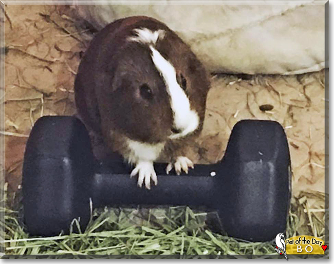 Dearest Bo, a.k.a. Bo Bo and Miss Affectionate and Athletic, what an adorable little Guinea Pig you are! You are so cute with that sweet face and the pretty-colored soft-looking fur. Thank you for sharing those great photos with us! Are you all set to work out in that last one?