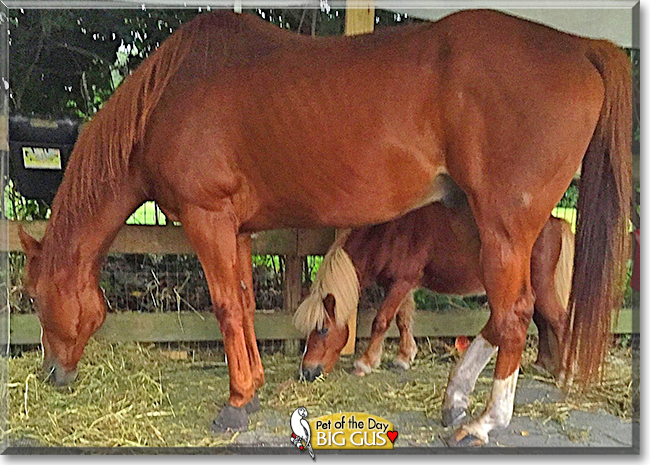 Dearest Big Gus, what an adorable Miniature Horse you are! That mane and forelock(?) are really something! (They had me wondering at first: do you live in the White House? :D) You are the sweetest fellow, too, and what a story you have to tell! You've been through a few changes but you and "Little" Red and Lawyer Lady are now living happily ever after. You and they love each other dearly, don't you. What a wonderful love-filled home you share!