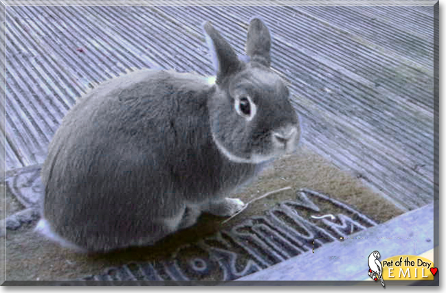 Congratulations, darling Emil, on being chosen today's Pet of the Day! We hope you and your dear young friend and all your family and friends are enjoying a fine celebration, full of fun and lovies and all your favorite games and treats, maybe some special carrots, parsley, and salad!