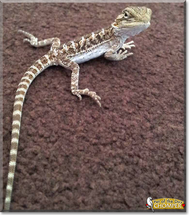 Dearest Chomper, you are adorable! What a sweet little baby Bearded Dragon you are! You are your dear person's first lizard, and you and she/he are having a wonderful time together as you grow up. You and he/she love each other very much, don't you. What a delightful love-filled home you share!