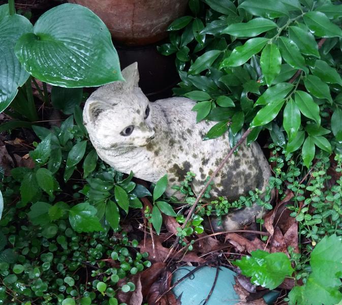 Since all my kitties are indoors, I "planted" a few around the garden:
