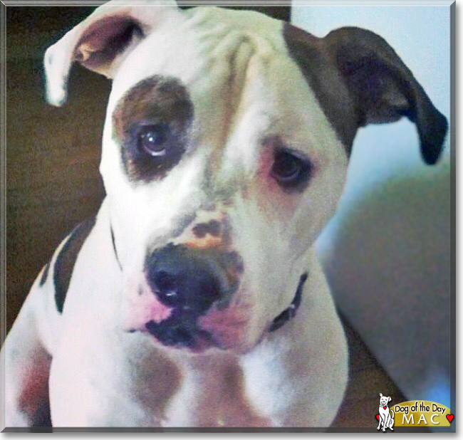 Dearest Mac, what a beautiful American Bulldog mix guy you are! You are so pretty in all those great photos, and you have the sweetest face full of so much love. You have the most delightful personality, too! You're very playful and friendly, and you make your family members smile with your energy and antics. You were a Christmas surprise for your dear young person and are an absolute treasure! You and he/she and all your family members love each other very much, don't you. What a wonderful love-filled home you share!