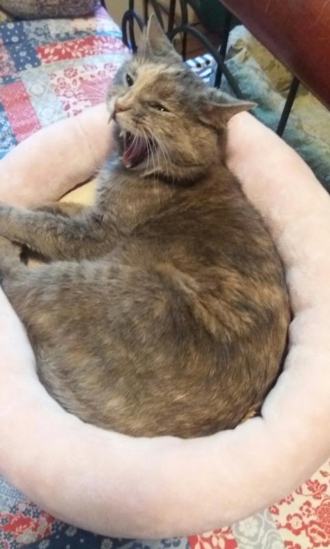 Miss Kitty got a new bed (pink!!!), she immediately assumed the oval shape of the bed.