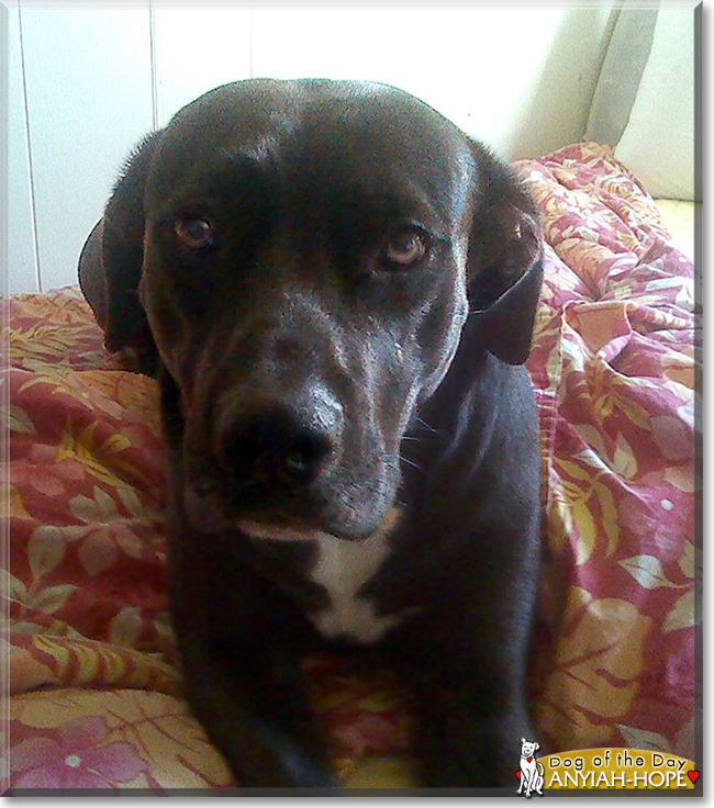 Congratulations, darling Anyiah-Hope, on being chosen today's Dog of the Day! We hope you and your dear person and all your family and friends are enjoying a fine celebration, full of fun and lovies and all your favorite treats and games, perhaps another round of tug-of-war!