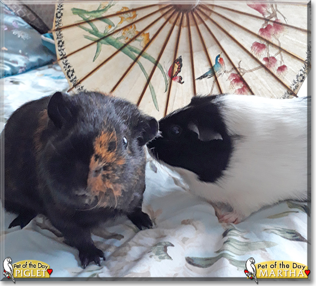 Congratulations, darling Martha and Piglet, on being chosen today's Pets of the Day! We hope you and all your family and friends are enjoying a fine celebration, full of fun and lovies and all your favorite games and treats, maybe some special grass and lettuce and fresh hay!