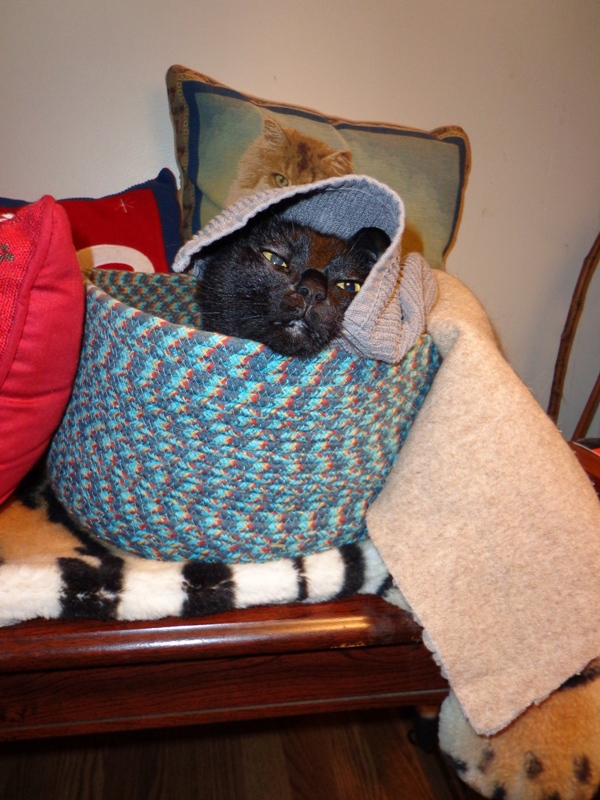 Clover is one of those kitties who always likes to be under covers, he also likes tight spaces, so nobody can ambush him, particularly Mindy.