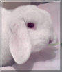 Dearest Morris, what an adorable Albino Lop Rabbit you are! You are so cute with that white fluffy fur and the pink eyes. And you have the most delightful personality, too. You make your dear people smile with all your energy and antics. And we are quite impressed that you once stared out a fox! You and all your family members love each other very much, don't you. What a wonderful love-filled home you share!
