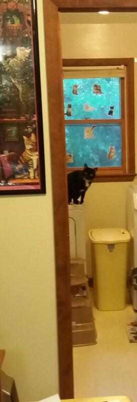 This is how well Mirtazapine (Willa's appetite stimulant) works. The little black speck in the background is Willa, she just had two servings of food, and now she's hovering on the dryer and watching me in the kitchen just in case I accidentally grab a food dish and re-fill it:D: