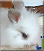 Dearest Tina, you are adorable! You are so pretty with that fluffy soft-looking fur and the sweet face. You're so cute chewing on your piece of bread, and it was interesting to learn that rabbits should chew on hard things because their teeth keep growing. You also have the most delightful personality! How nice that you have a rabbit friend to live with and do everything together with. Your dear person says you are "pretty and so sweet... soft to stroke, too." You and he/she and your dear rabbit friend all love each other very much, don't you. What a wonderful love-filled home you share!