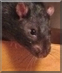 Dearest Midnight, what an utterly adorable little Fancy Rat you are! You are a poster boy for that expression "Black is beautiful!" You have a delightful personality, too. You love to explore, finding new places to get into when you are out of your cage for exercise. Fortunately, you are good about coming when your person calls you! You love cuddles and kisses and food. You and your dear person love each other very much, don't you. What a wonderful love-filled home you share!