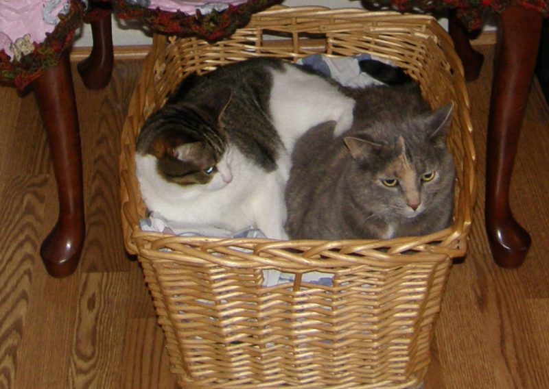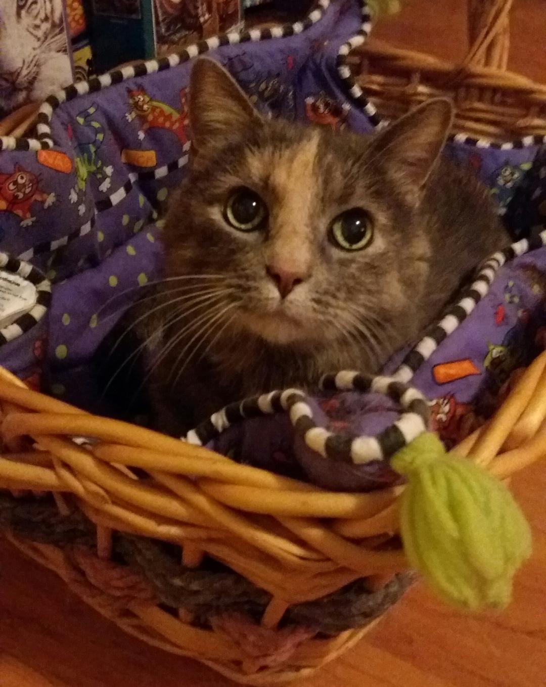 One of Miss Kitty's favorite spots is a bed in a basket. She looked particularly cute that day. She is 16 1/2 years old, and she has been with me the longest of all my kitties.