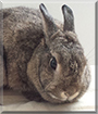 You like to be close to your person, and you go together from room to room when you are not in your cage. You prefer soft surfaces, and you were on a comfortable pillow for your photo shoot! You are a bunny camera star for sure! Best of all, you are a greatly loved bunny!