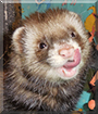Dearest Drogo, what an utterly gorgeous young ferret you are! That long fluffy fur has such pretty colors and looks so soft, and you have the sweetest face with the big pink nose and the lovely dark eyes. You have the most delightful personality, too. Thank you for sharing all those terrific photos with us. You are so cute licking your chops in that first one. I see you're all set for Halloween, too. And what an adorable baby you were! Isn't it nice that you have your brother Ridley living with you. You and he and your dear person all love each other very much, don't you. What a wonderful love-filled home you share!