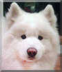 Dearest Buddha, what an utterly gorgeous Samoyed you are! That white coat is so fluffy and looks so very soft, and what a sweet face you have with that big colorful nose and the lovely dark eyes. You have the most delightful personality, too! You make your dear people, and everyone you meet, smile with your energy and antics, making friends wherever you go. You love the outdoors and going on adventures with your family. You and they all love each other very much, don't you. What a wonderful love-filled home you share!