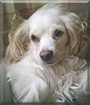 Dearest Cotton, what a precious Cocker Spaniel/Cavalier King Charles Spaniel mix doggie you are! You are absolutely adorable with that fluffy fur and the sweet face with the lovely big eyes so full of the look of happiness and love. What a story you have to tell! You came to your dear person through Craig's List, and we're so glad you did. Craig's List is a horrendous dumping ground for unwanted animals, but at least it enabled you and your Real person to get together. When you first arrived, you were scared to death of most people and all animals, but over the years you've gained trust and come to know love. You are now very comfortable and know you do not not need to be afraid ever again. Your dear family members call you "the 'EST' - the cutest, funniest, sweetest, playfulest, lovingest dog" they've ever known or met in their lives! You and they all love each other very much, don't you. What a wonderful love-filled home you share!