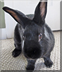 What a handsome bunny you are with your soft, black fur; your l-o-n-g whiskers; and your alert ears! I would love to sit with you as you lie on your person's bed, taking up the sunshine and making your fur nice and warm! When you're not sun bathing, you play with the dogs or enjoy your favorite snacks! You are a busy fellow, Luigi!