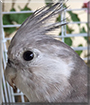 Dearest Skye, what a gorgeous, absolutely stunning White-faced Cockatiel you are! You are beautiful with all those cloud-like grey and white feathers and that sweet face that shows so well your happiness. You have the most delightful personality, and you make your dear friend smile with all your energy and antics. You and she/he love each other very much, don't you. What a wonderful love-filled home you share!